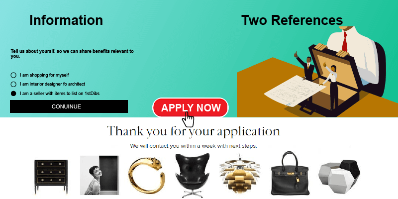1stdibs is now a leading online platform with a unique shopping & selling experience. It works with more than 4000+ sellers worldwide, in 50+ countries, specializing in fine art, furniture, collectibles & jewelry. Unlike the other online platforms, 1stdibs only allows those sellers who are professionals in their fields. To start the business of selling furniture on 1stdibs, you, as a prospective seller, have to submit an application for selling furniture. You also have to provide proof of credibility & two references who can verify that you are a professional and respected seller or organization with high-quality inventory.