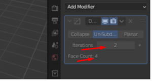 Step 4: All you have to do is increase the iterations, which will unsubdivide. In our case, we have increased the iterations from 0 to 2. This results in a lower number of face counts.