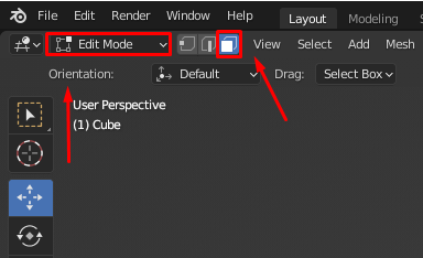The first thing you need to do is switch from object mode to edit mode. The easy way to do it is to press the Tab key on your keyboard. Another way to enter edit mode is to select the edit option manually. See the picture below.